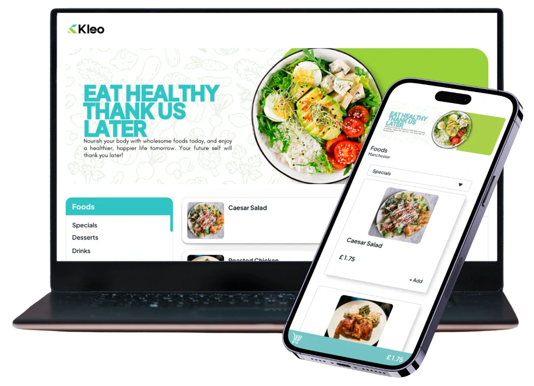 Kleo’s digital menus make it easy for customers to view your offerings on clear,